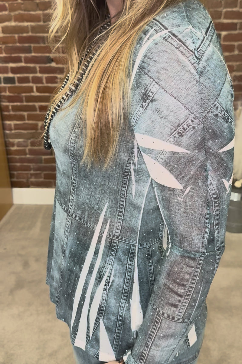 Prairie Starlight Denim Rhinestone Mesh Top