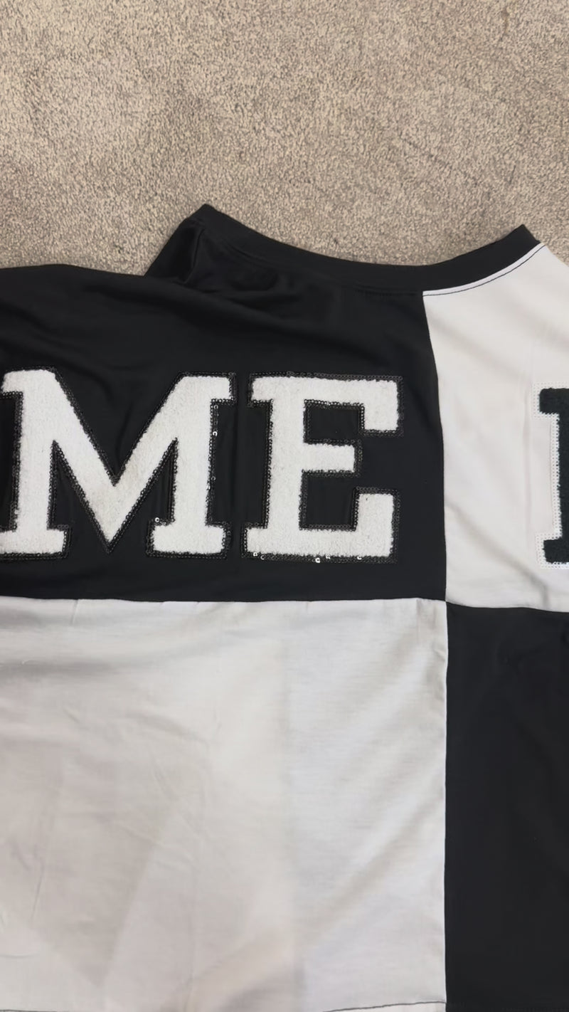 'Game Day' Huddle Up Black/White Color Block Top