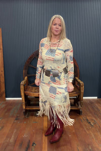 This faux suede beauty brings all the patriotic vibes with a bold, all-American pattern and a statement-making long 14" fringe hemline that moves with every step. Whether you're headed to a summer concert, rodeo, or Fourth of July celebration, this skirt is made to stand out.